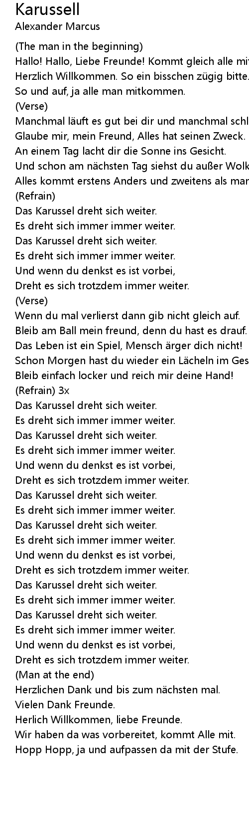 | Hallo! Hallo, Liebe Freunde! Kommt gleich alle mit, ja. | |
