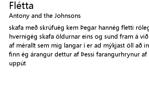 | skafa me skrú fué g kem egar hanné g fletti ró lega bakvi lendarnar hvernigé g skafa ldurnar eins og sund fram á vi leyf u mé r a fletta ofan af mé rallt sem mig langar í er ad m kjast ll a innan endalaustloksins finn é g á rangur dettur af essi farangurhrynur af lag eftir lag og é g storma uppú t |