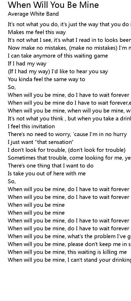 When will you be mine, when will you be mine, when will you be mine