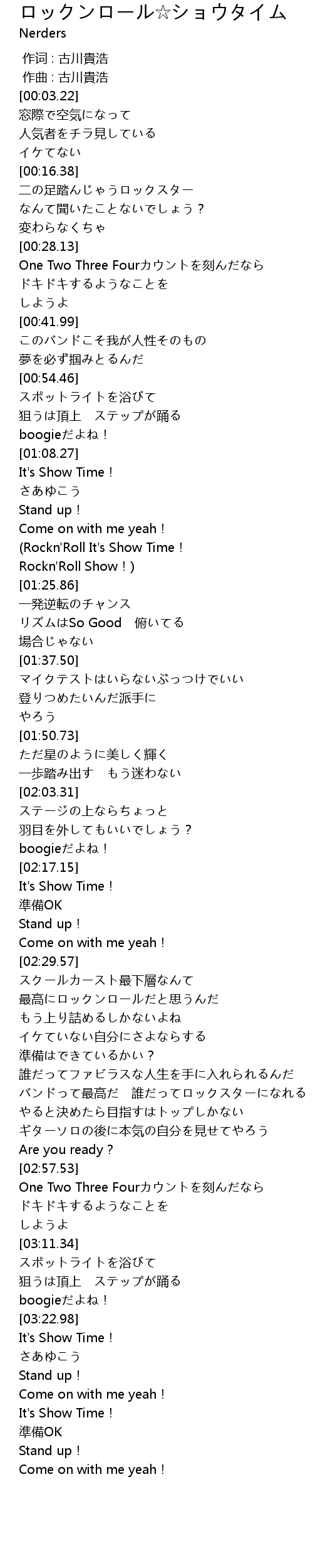 | [01:20.78] | (Rockn'Roll It's Show Time! |