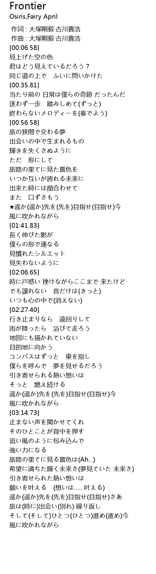 | [04:12.92] | 旅は(時に)出会い(別れ) 繰り返し |