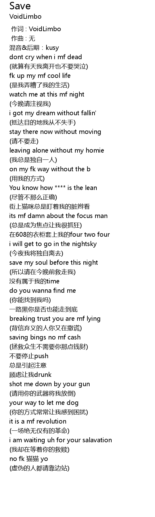 [00:00.000] zuò cí : VoidLimbo