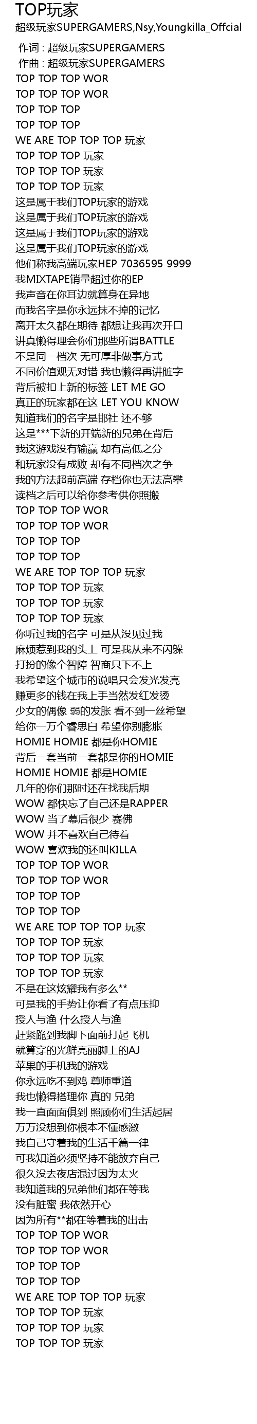 | [02:23.031] | WE ARE TOP TOP TOP 玩家 |