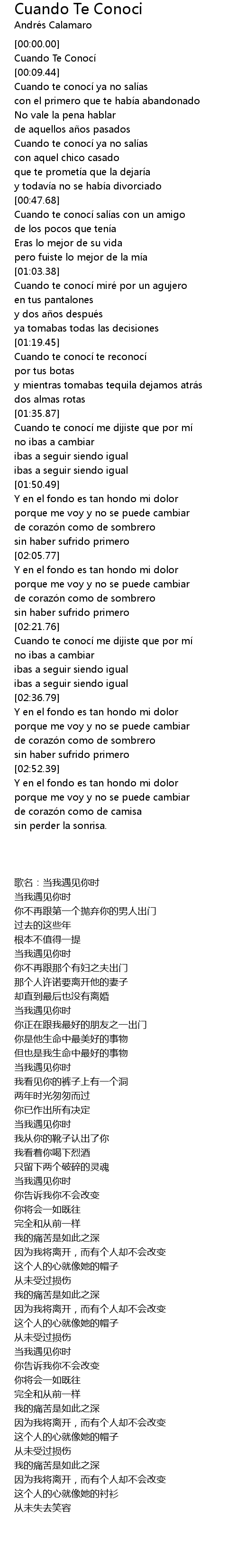 | [00:48.68] | Cuando te conoci sali as con un amigo |