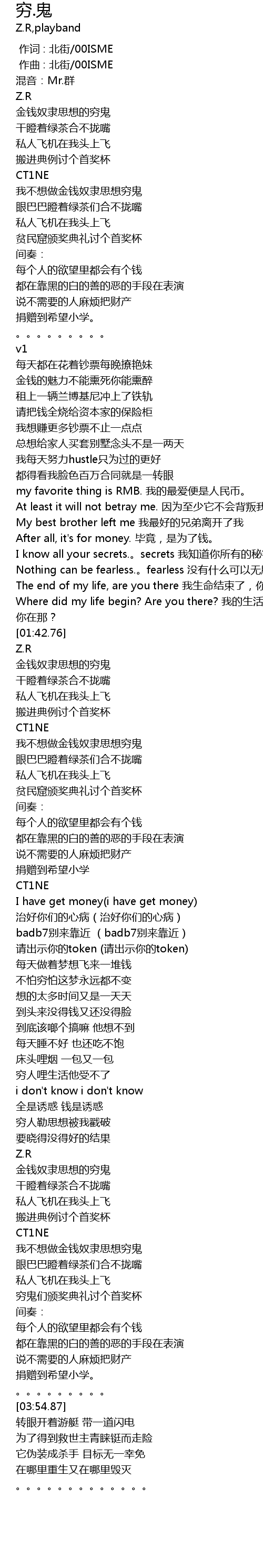 | [01:58.17] | 我不想做金钱奴隶思想穷鬼 |