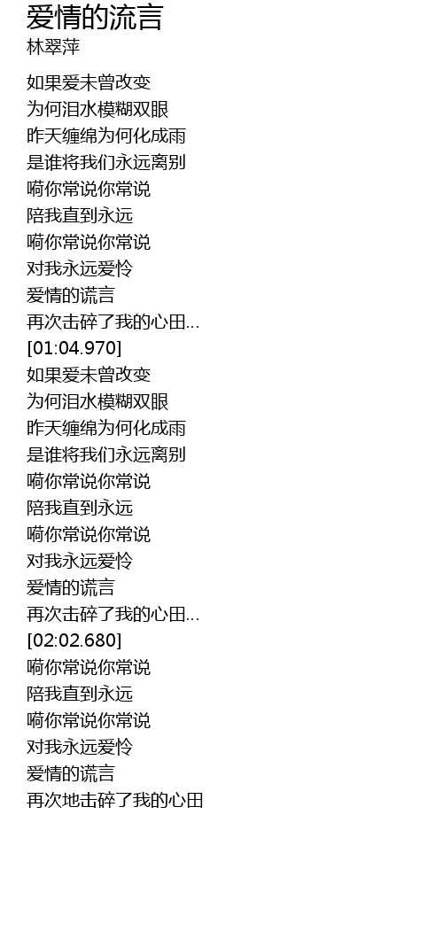 | [01:41.650] | pei wo zhi dao yong yuan |