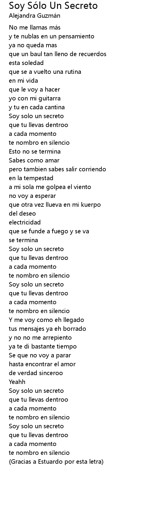 | Song | Soy Sólo Un Secreto |