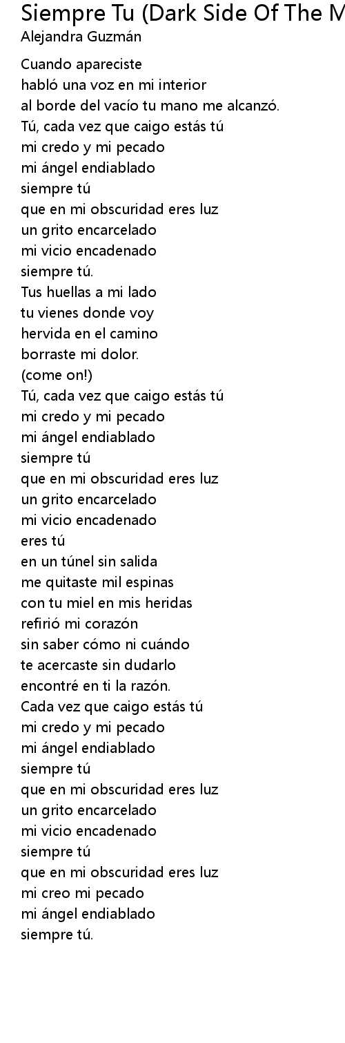 | Song | Siempre Tu (Dark Side Of The Moon) |