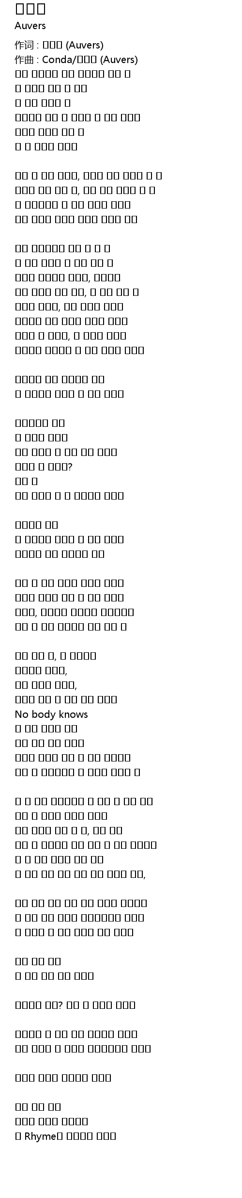 作词 : 오베르 (Auvers) |