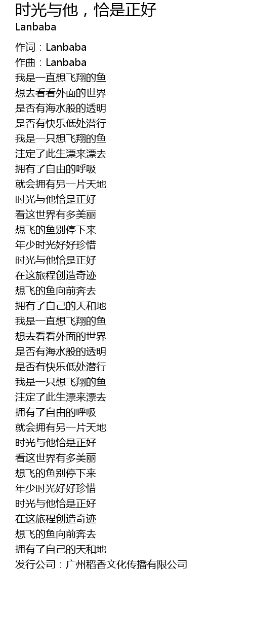 | [03:24.90] | 发行公司:广州稻香文化传播有限公司 |