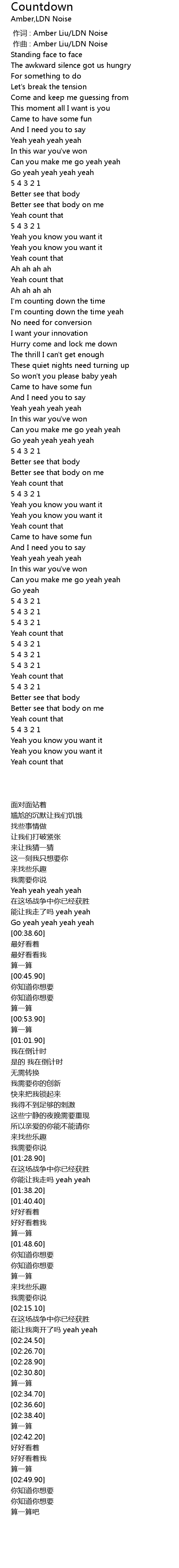 | [00:00.000] | 作词 : Amber Liu/LDN Noise |