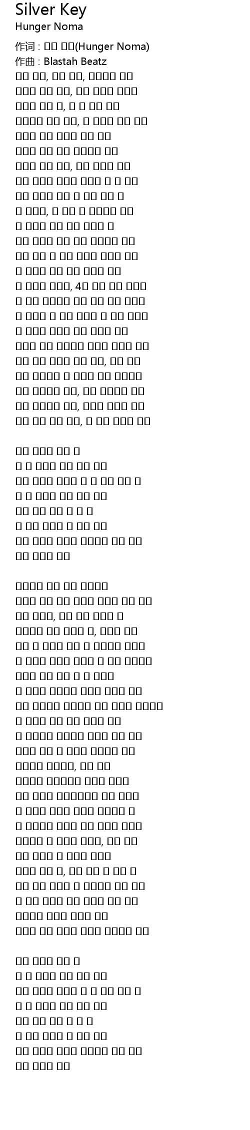 作词 : 헝거 노마(Hunger Noma) |