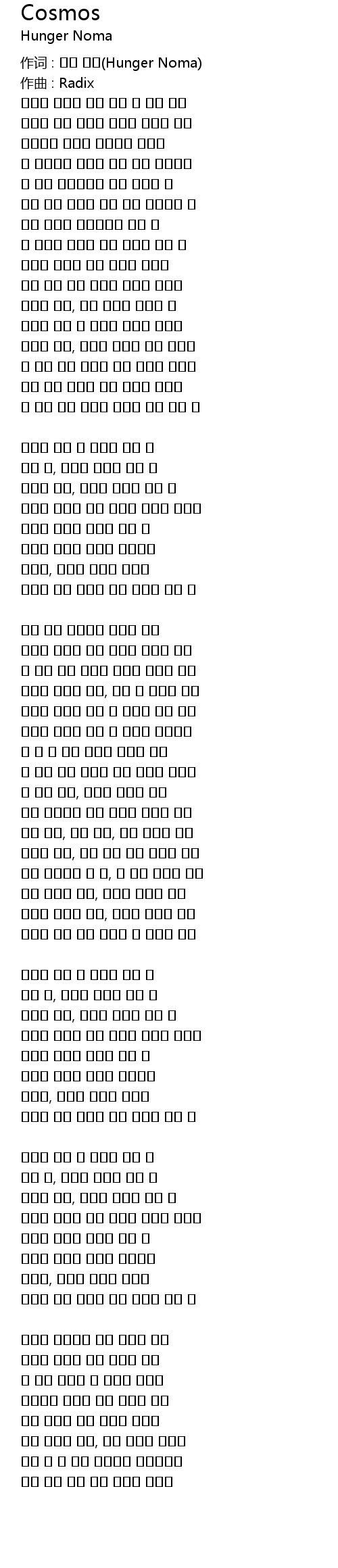 作词 : 헝거 노마(Hunger Noma) |