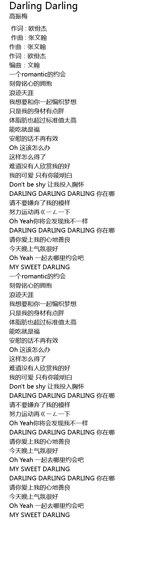 | [01:16.10] | DARLING DARLING DARLING nǐ zài nǎ |