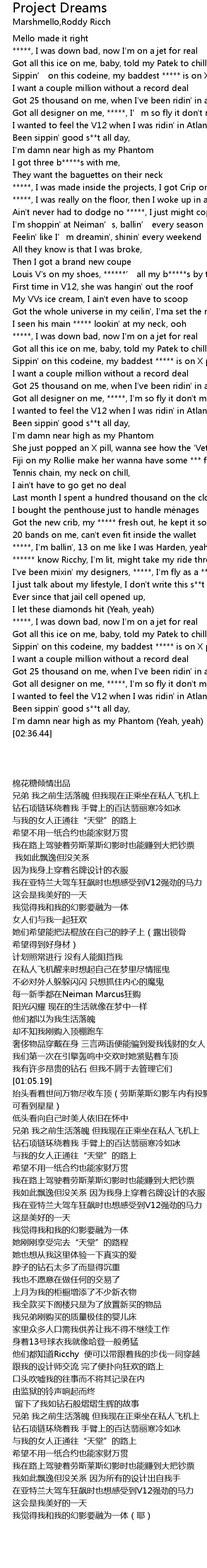 | [01:59.48] | ****** know Ricchy, I'm lit, might take my ride through the 6 |