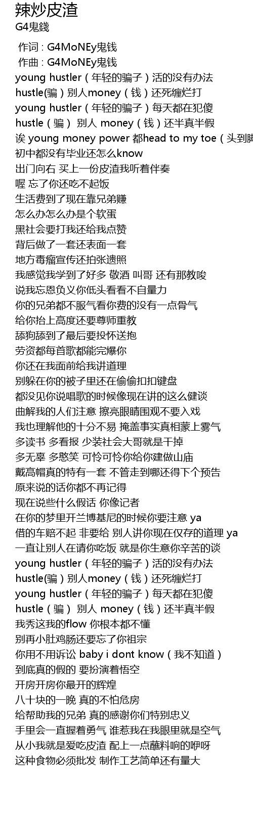 | [00:15.901] | hustle piàn bié rén money qián hái sǐ chán làn dǎ |