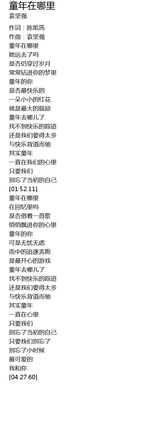 | [03:20.58] | 童年去哪儿了 |