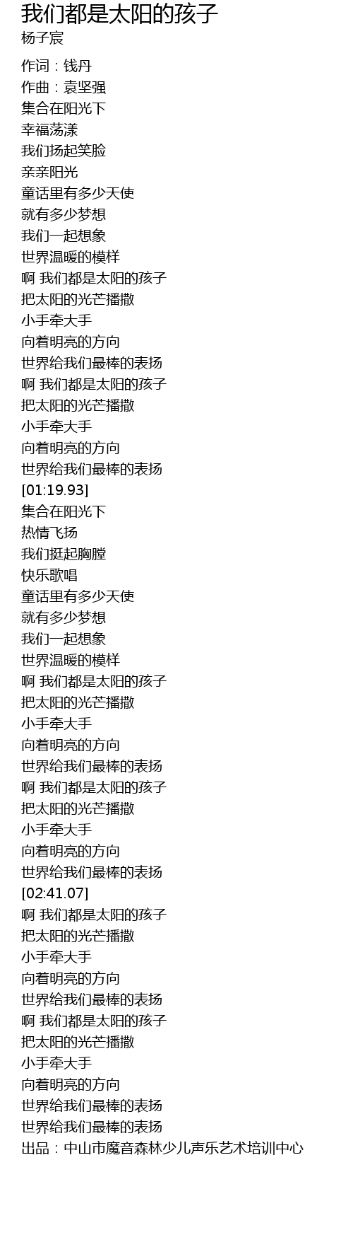 | [00:41.81] | 啊 我们都是太阳的孩子 |