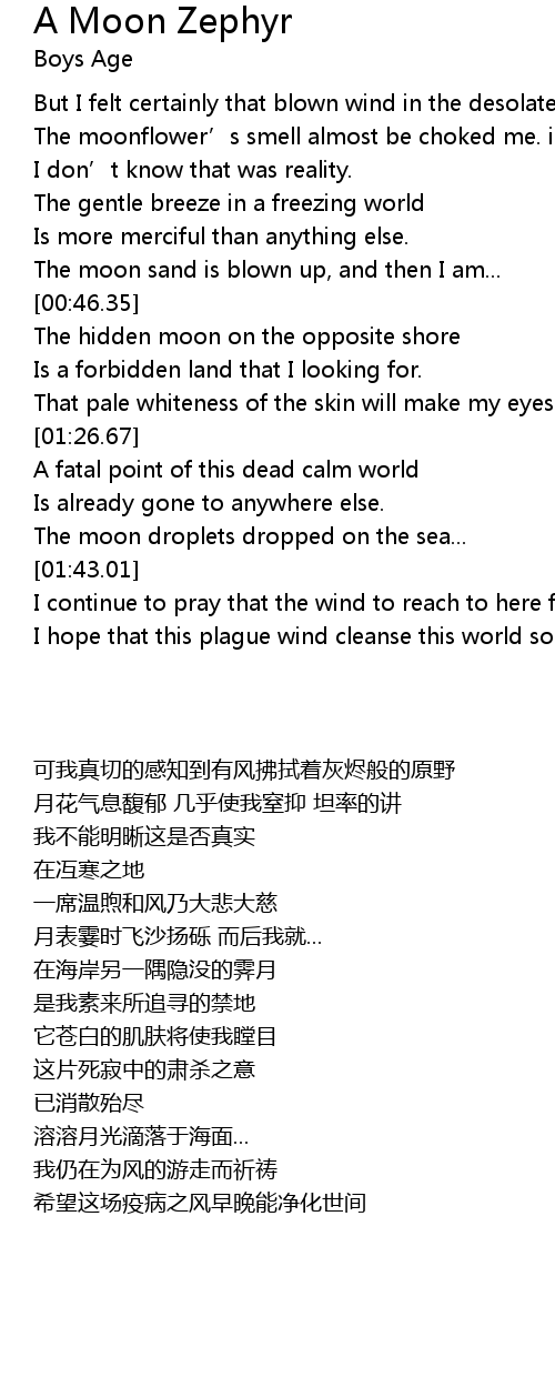 | [00:40.61] | The moon sand is blown up, and then I am... |