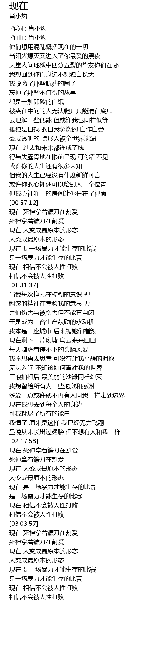 | [00:57.12] | 现在 死神拿着镰刀在割爱 |