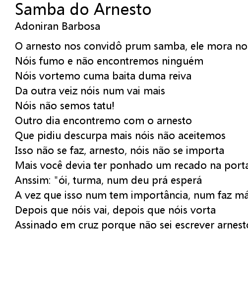 | O arnesto nos convid prum samba, ele mora no brá s | |