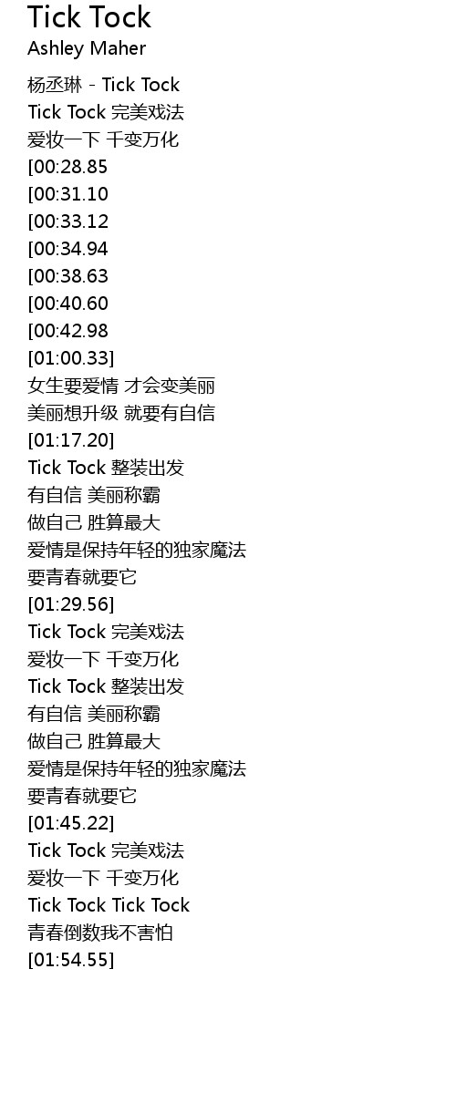 | [01:45.61] | Tick Tock wán měi xì fǎ |