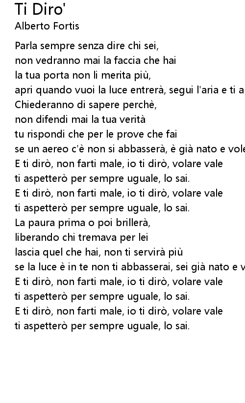 | E ti diro, non farti male, io ti diro, volare vale | |