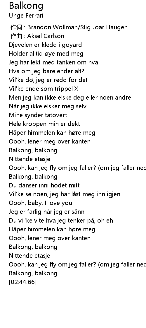 | [02:01.50] | Du vil' ke vite hva jeg tenker p, oh eh |