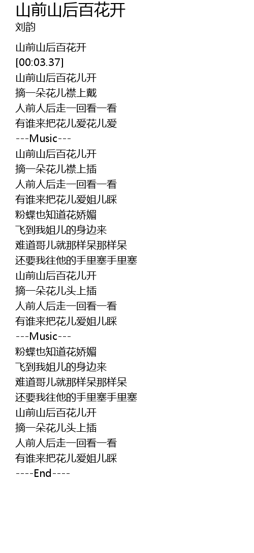 | [02:58.82] | shān qián shān hòu bǎi huā ér kāi |