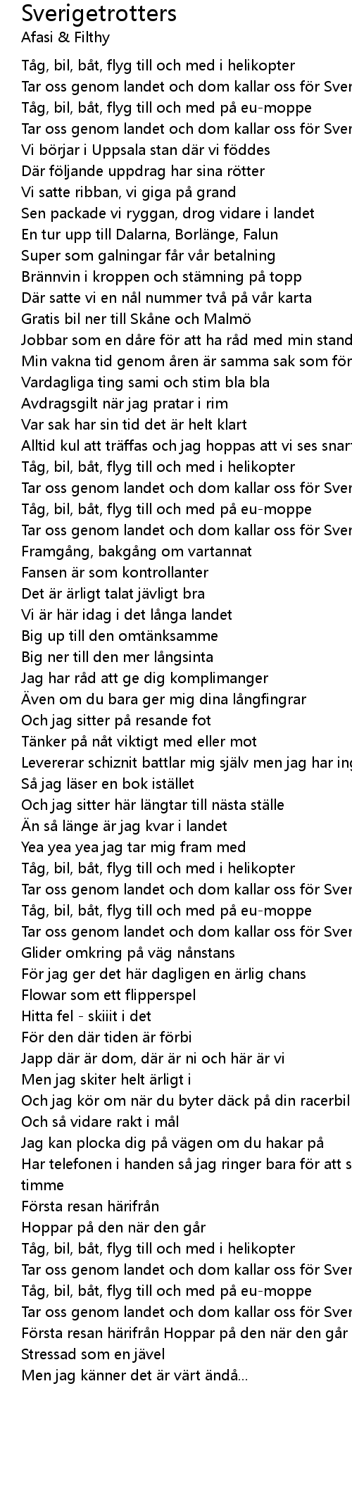 | Tar oss genom landet och dom kallar oss för Sverige-trotters | |