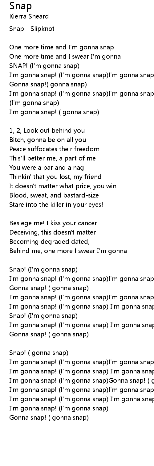 I'm gonna snap! (I'm gonna snap)I'm gonna snap! (I'm gonna snap)I'm gonna snap! (I'm gonna snap)