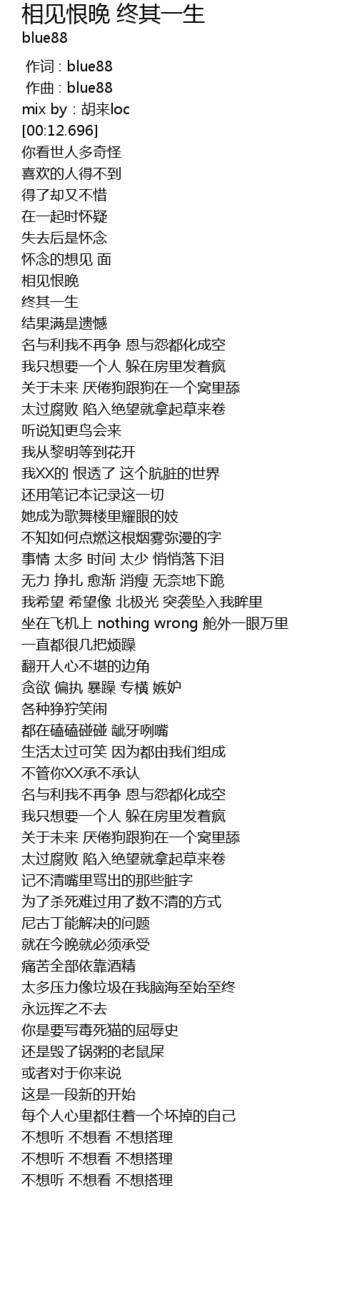 | [00:50.623] | 我XX的 恨透了 这个肮脏的世界 |