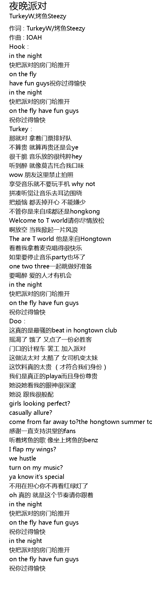 | 作词 : TurkeyW/烤鱼Steezy | |