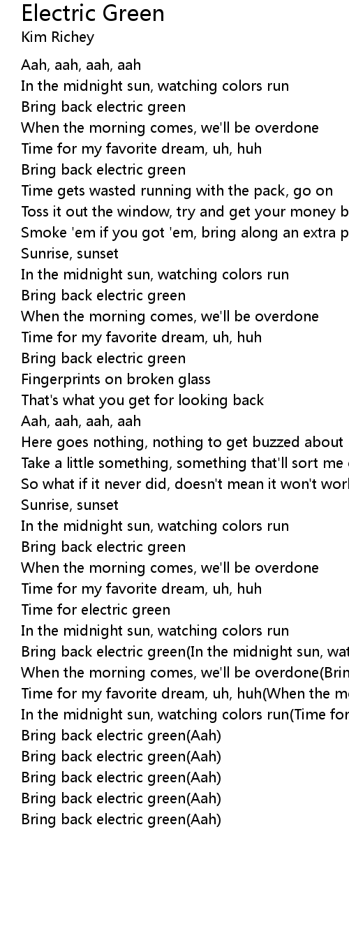 Bring back electric green(In the midnight sun, watching colors run) |