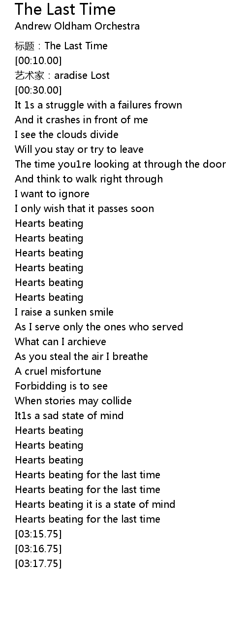 | [03:10.75] | Hearts beating for the last time |