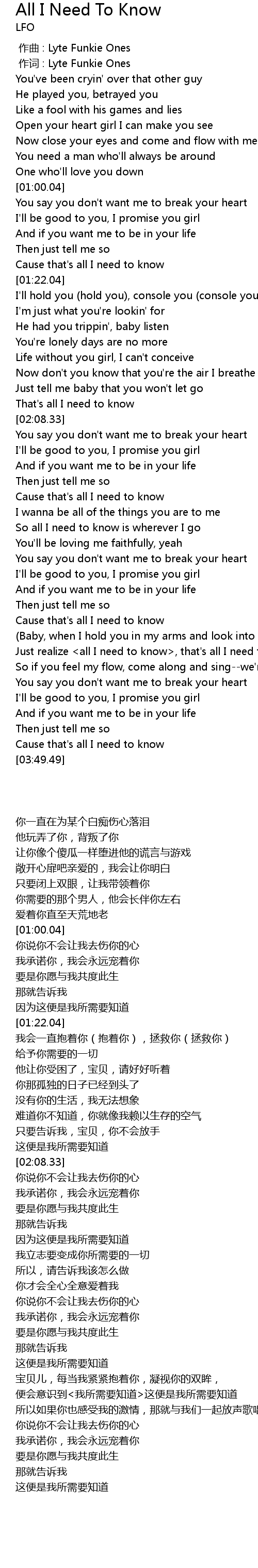 | [03:13.60] | Just realize all I need to know, that' s all I need to know |