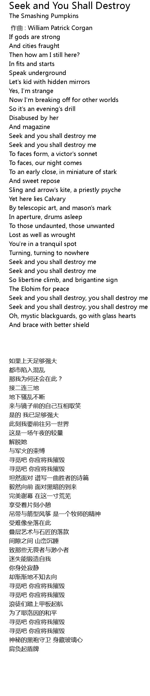 | [02:16.86] | Seek and you shall destroy, you shall destroy me |