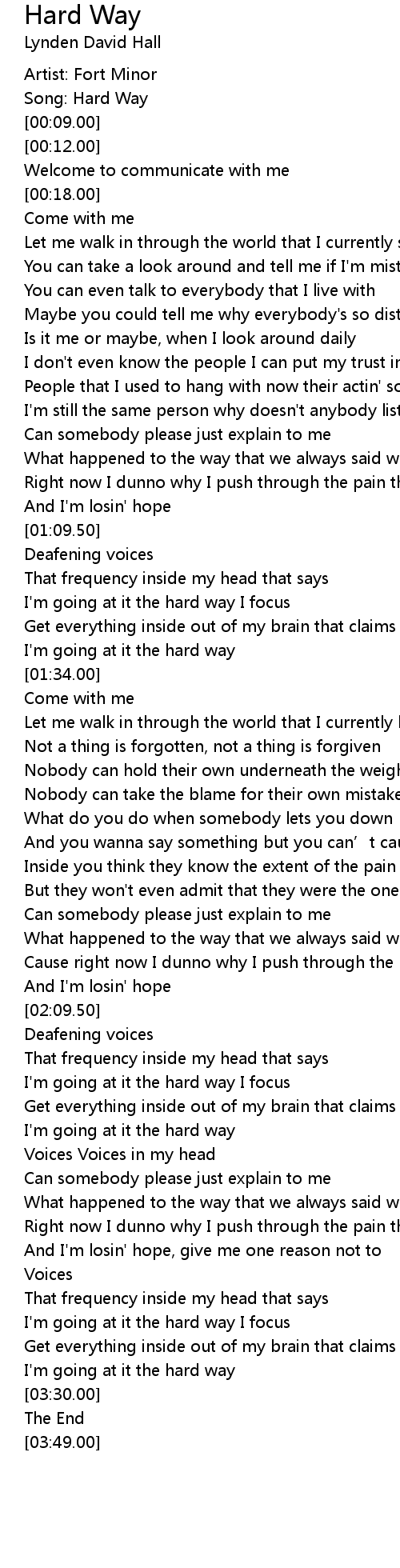 | [00:05.00] | Song: Hard Way |