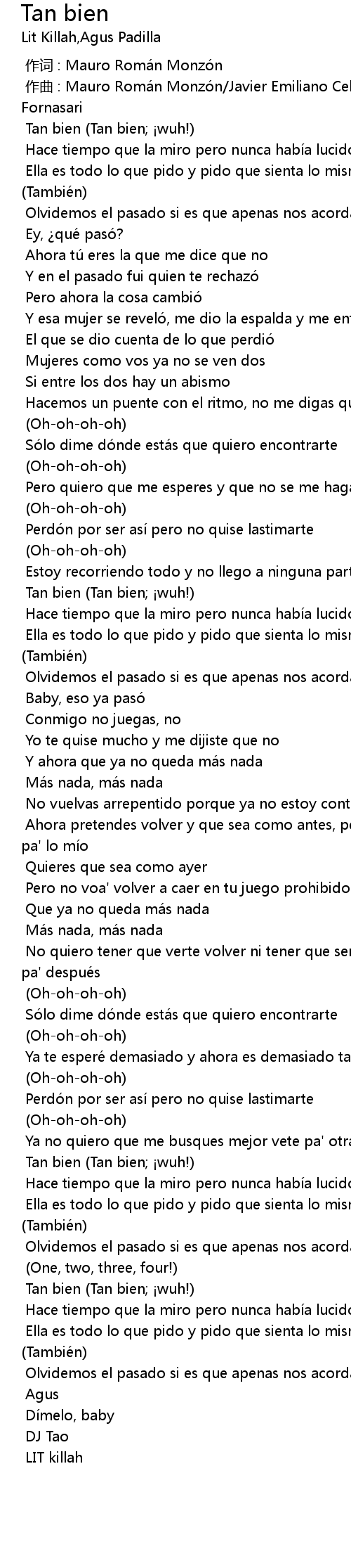 | [00:18.175] | Tan bien (Tan bien; ¡wuh!) |