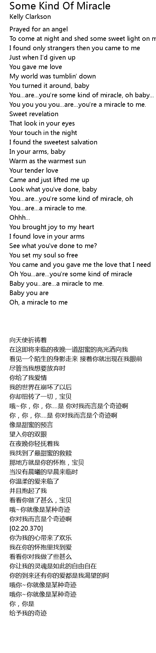 You...are...you're some kind of miracle, oh baby... |