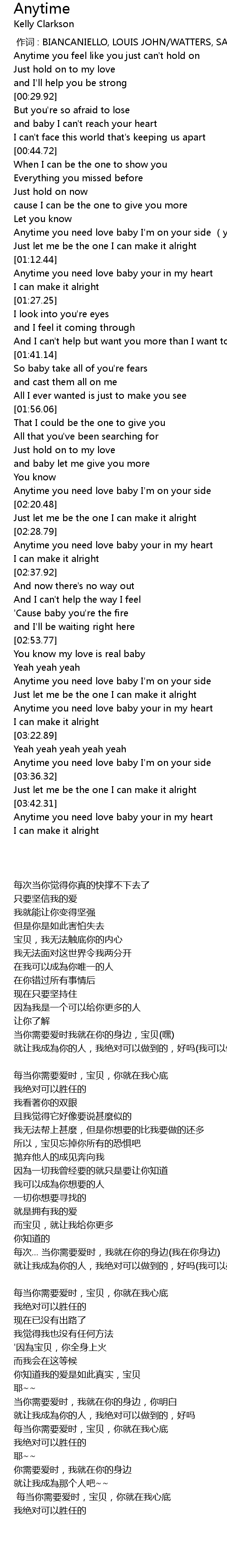 | [03:29.60] | Anytime you need love baby I' m on your side |