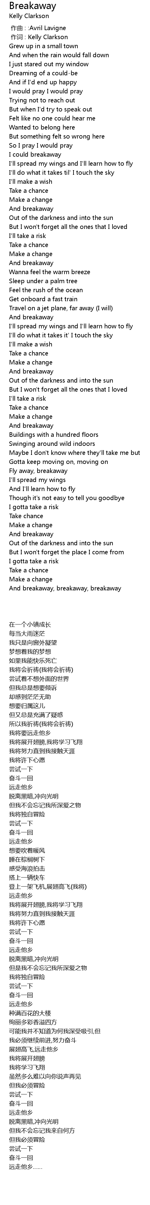 | [00:01.00] | 作词 : Kelly Clarkson |