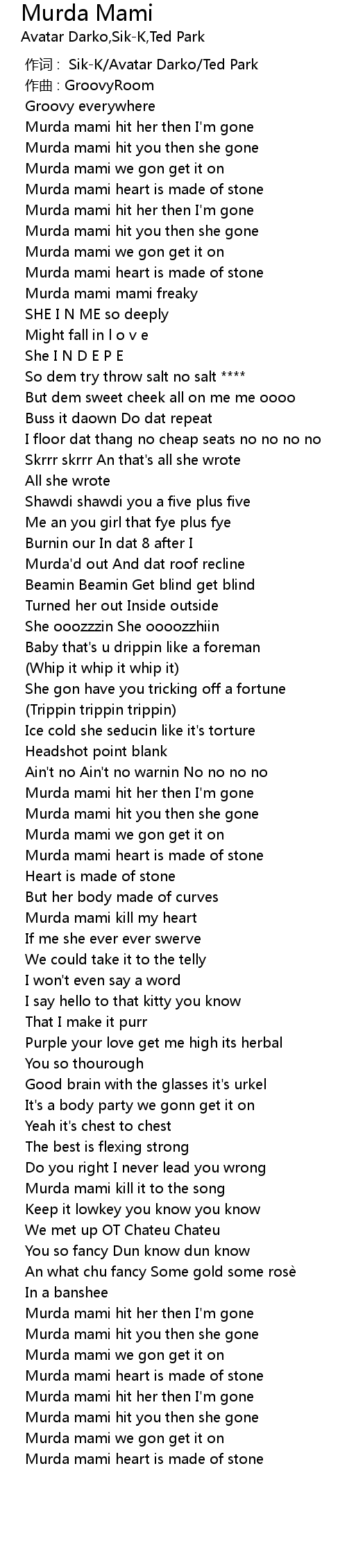 | [01:33.054] | Murda mami we gon get it on |