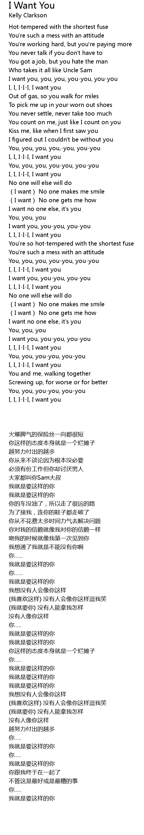 | [00:31.260] | I want you, you, you, youyou, youyou |