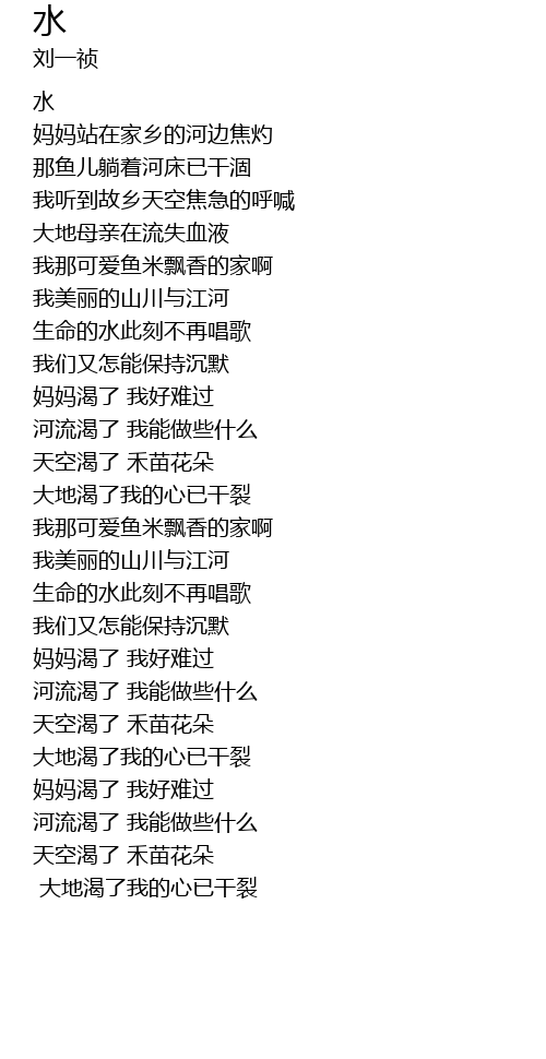 | [01:33.96] | 河流渴了 我能做些什么 |