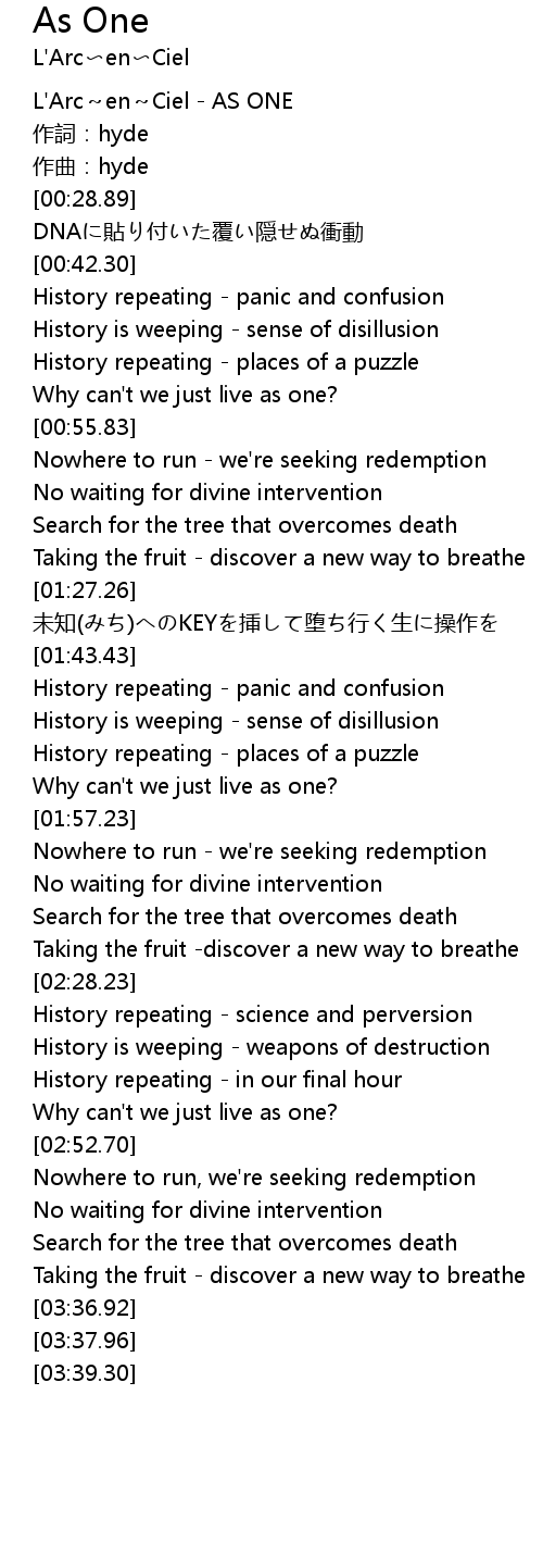 | [00:00.50] | L'Arc~en~Ciel - AS ONE |