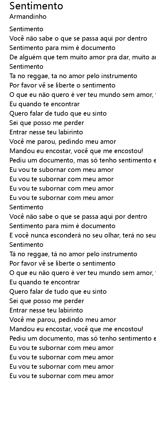 | Pediu um documento, mas so tenho sentimento e eu dou | |
