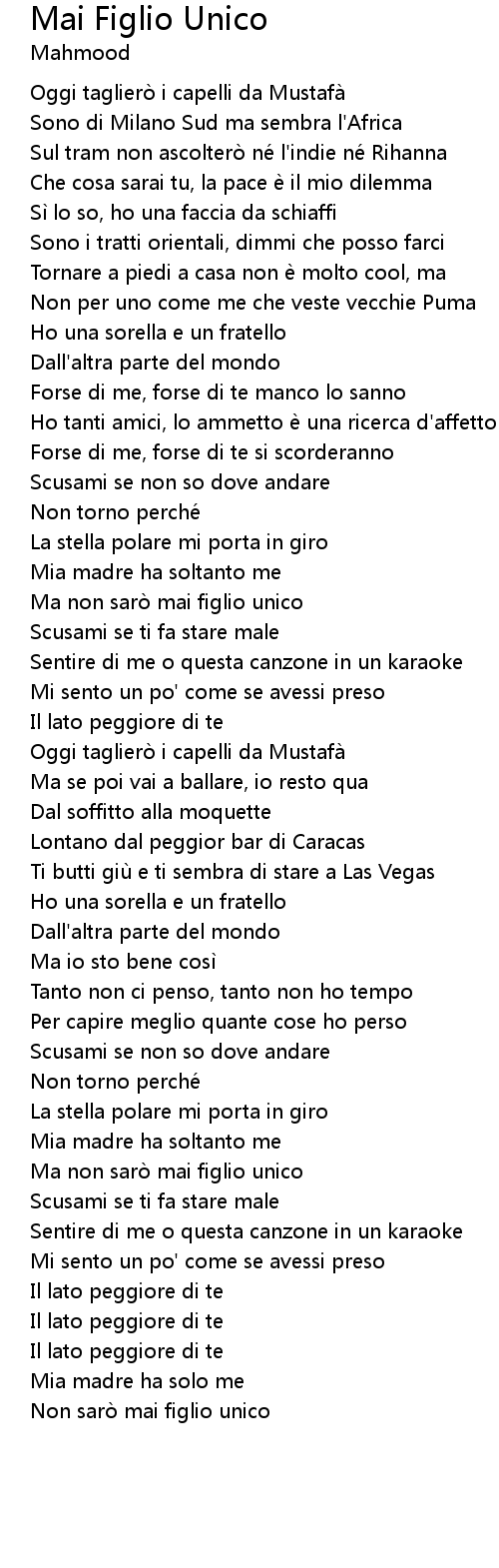 | [02:19.99] | Ma non sarò mai figlio unico |