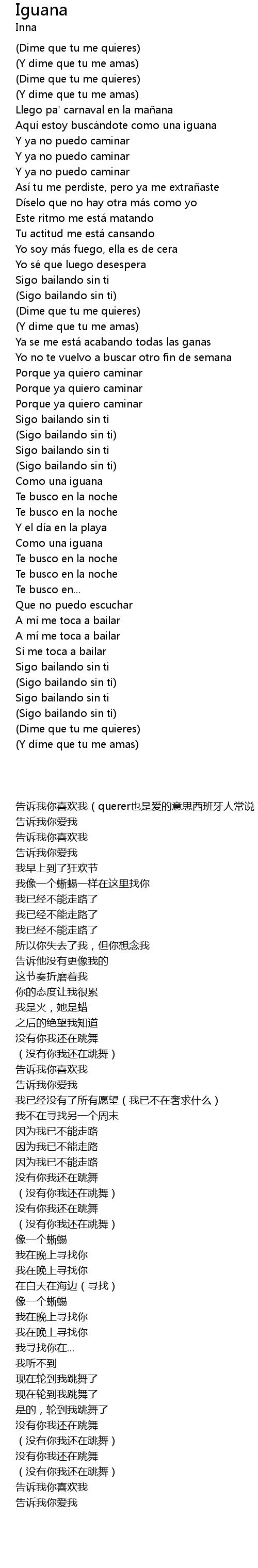 | [00:22.13] | Aquí estoy buscá ndote como una iguana |