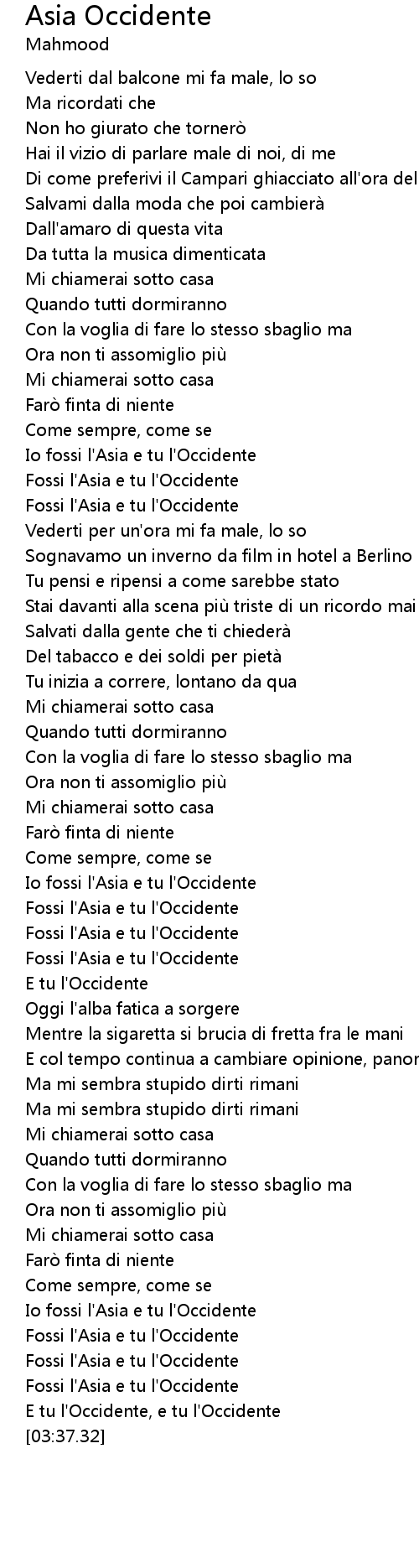 | [03:16.79] | Fossi l'Asia e tu l'Occidente |